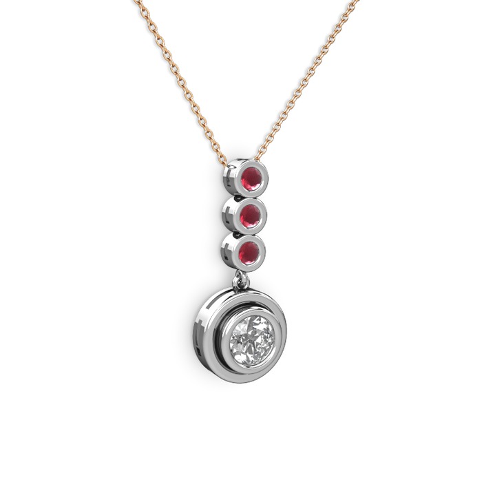 Elmas ve kök yakut 8 ayar beyaz altın kolye (0.68 karat, 40 cm rose altın rolo zincir)