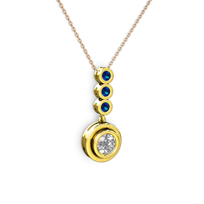Elmas ve lab safir 14 ayar altın kolye (0.68 karat, 40 cm rose altın rolo zincir)