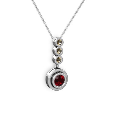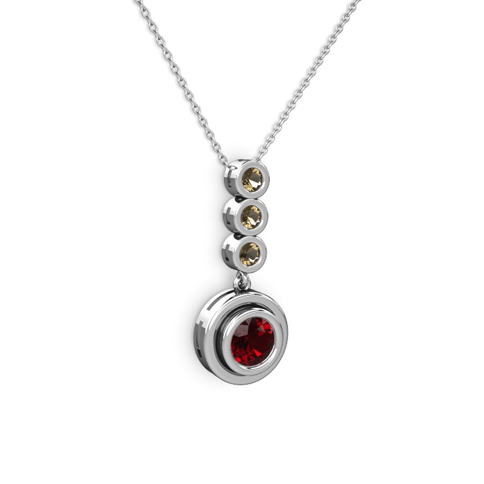 Garnet ve dumanlı kuvars 14 ayar beyaz altın kolye (40 cm beyaz altın rolo zincir)