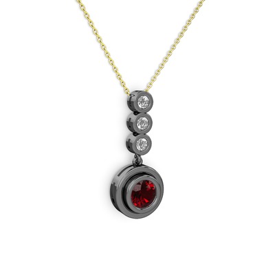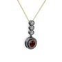 Garnet ve elmas 925 ayar siyah rodyum kaplama gümüş kolye (0.33 karat, 40 cm altın rolo zincir)