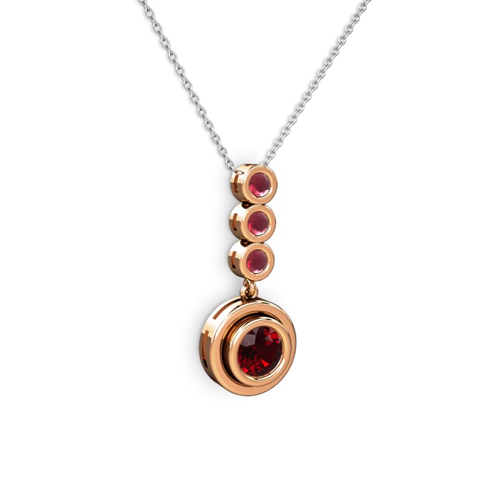 Garnet ve kök yakut 14 ayar rose altın kolye (40 cm beyaz altın rolo zincir)