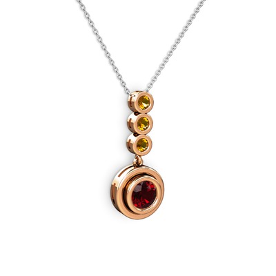 Garnet ve sitrin 8 ayar rose altın kolye (40 cm beyaz altın rolo zincir)
