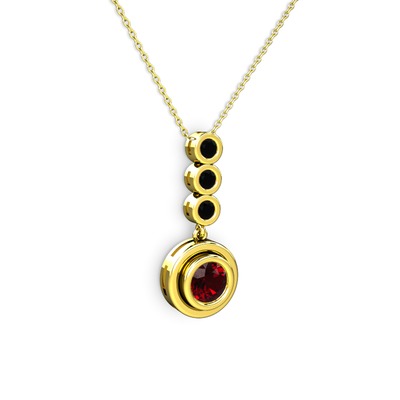 Garnet ve siyah zirkon 14 ayar altın kolye (40 cm altın rolo zincir)