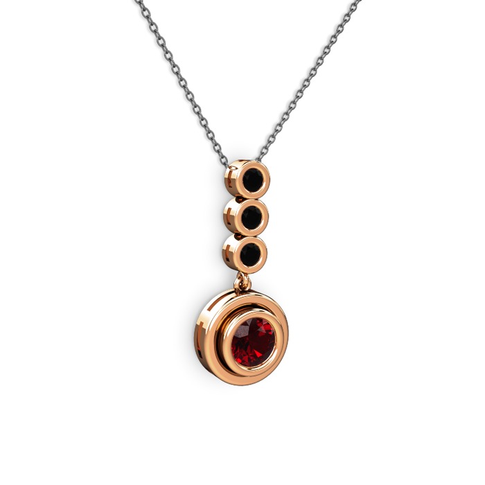 Garnet ve siyah zirkon 925 ayar rose altın kaplama gümüş kolye (40 cm gümüş rolo zincir)