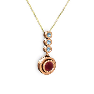 Kök yakut ve akuamarin 925 ayar rose altın kaplama gümüş kolye (40 cm gümüş rolo zincir)