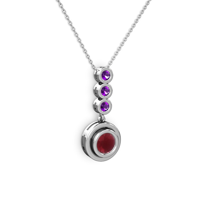 Kök yakut ve ametist 14 ayar beyaz altın kolye (40 cm beyaz altın rolo zincir)