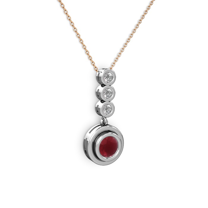 Kök yakut ve beyaz zirkon 925 ayar gümüş kolye (40 cm rose altın rolo zincir)