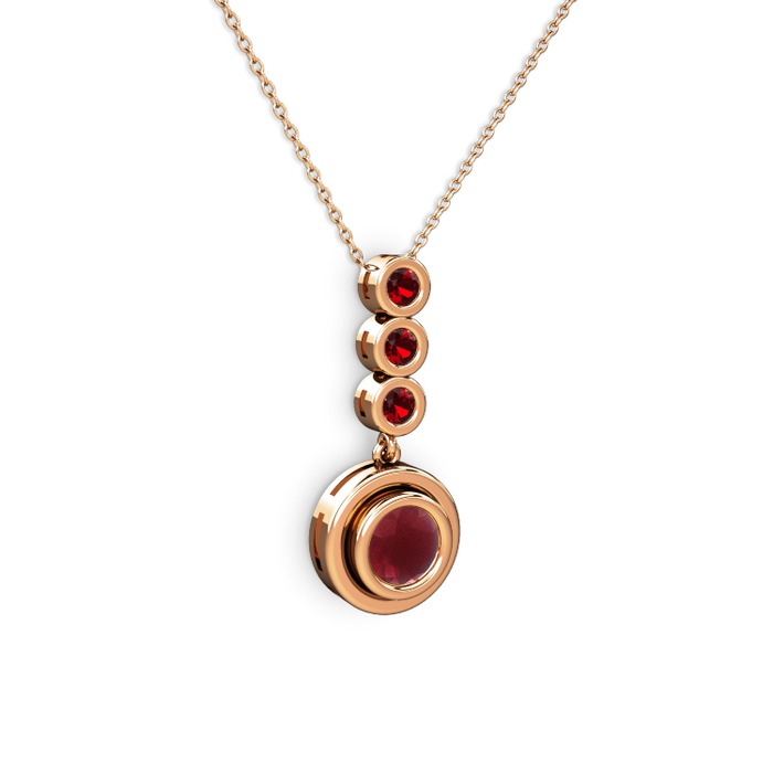 Kök yakut ve garnet 925 ayar rose altın kaplama gümüş kolye (40 cm rose altın rolo zincir)