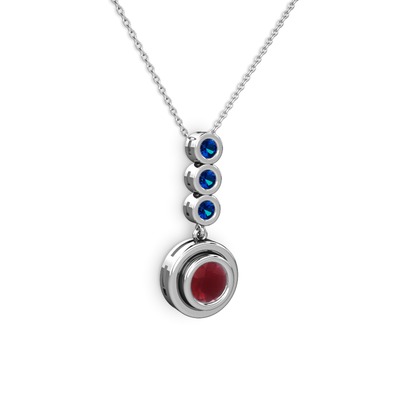 Kök yakut ve lab safir 8 ayar beyaz altın kolye (40 cm beyaz altın rolo zincir)
