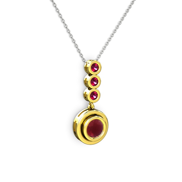 Kök yakut ve rodolit garnet 925 ayar altın kaplama gümüş kolye (40 cm gümüş rolo zincir)