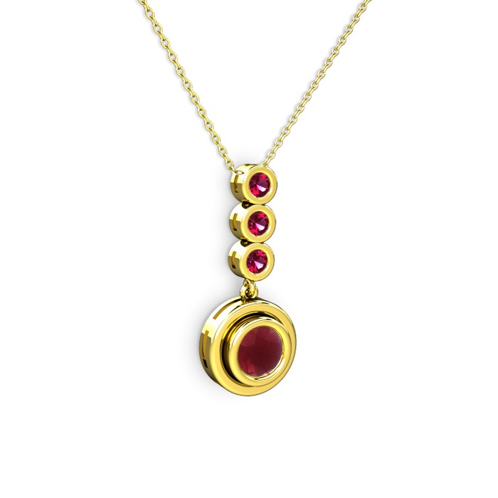 Kök yakut ve rodolit garnet 925 ayar altın kaplama gümüş kolye (40 cm gümüş rolo zincir)