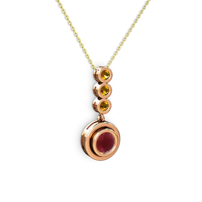 Kök yakut ve sitrin 14 ayar rose altın kolye (40 cm altın rolo zincir)