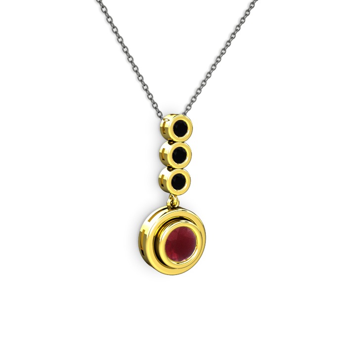 Kök yakut ve siyah zirkon 14 ayar altın kolye (40 cm gümüş rolo zincir)