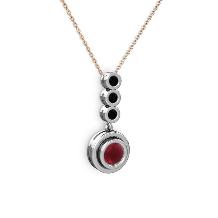 Kök yakut ve siyah zirkon 925 ayar gümüş kolye (40 cm gümüş rolo zincir)