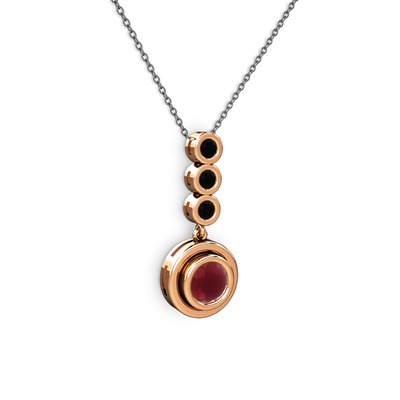 Kök yakut ve siyah zirkon 925 ayar rose altın kaplama gümüş kolye (40 cm gümüş rolo zincir)