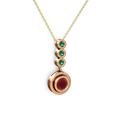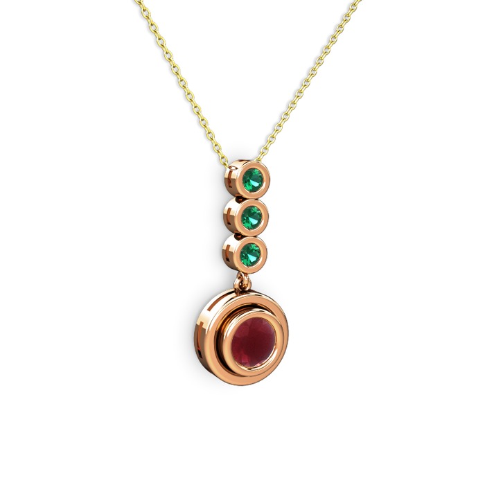 Kök yakut ve yeşil kuvars 14 ayar rose altın kolye (40 cm altın rolo zincir)