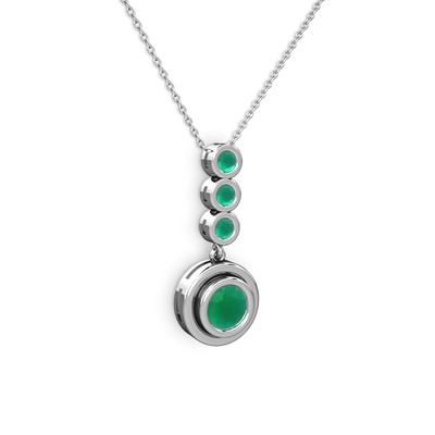 Kök zümrüt 14 ayar beyaz altın kolye (40 cm beyaz altın rolo zincir)