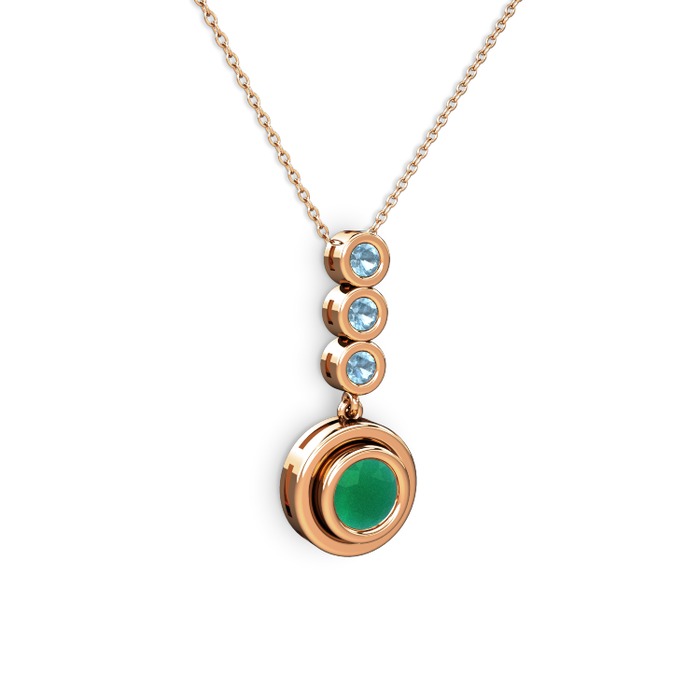 Kök zümrüt ve akuamarin 14 ayar rose altın kolye (40 cm rose altın rolo zincir)