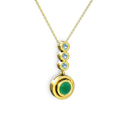 Kök zümrüt ve akuamarin 18 ayar altın kolye (40 cm altın rolo zincir)