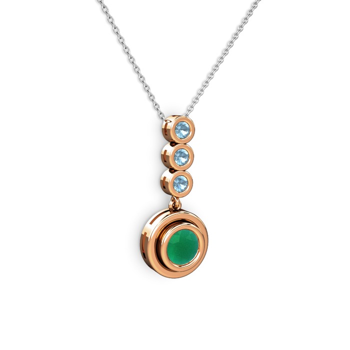 Kök zümrüt ve akuamarin 8 ayar rose altın kolye (40 cm beyaz altın rolo zincir)