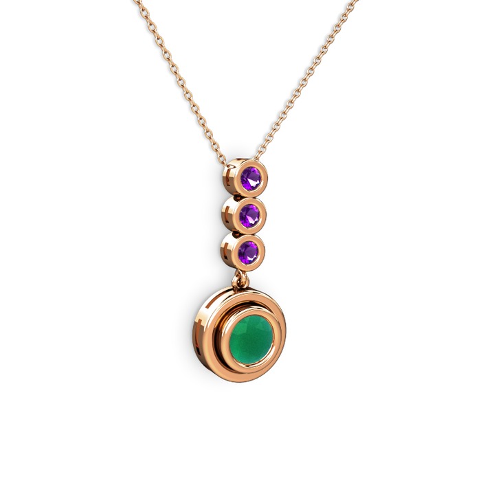 Kök zümrüt ve ametist 925 ayar rose altın kaplama gümüş kolye (40 cm rose altın rolo zincir)