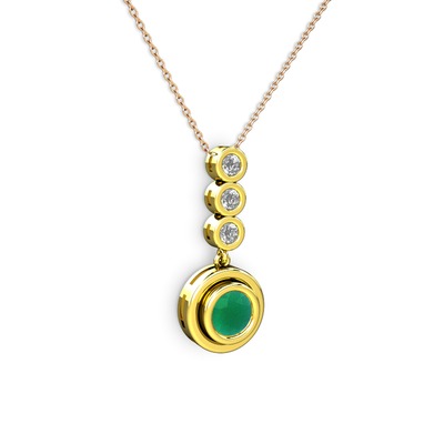 Kök zümrüt ve elmas 925 ayar altın kaplama gümüş kolye (0.33 karat, 40 cm rose altın rolo zincir)