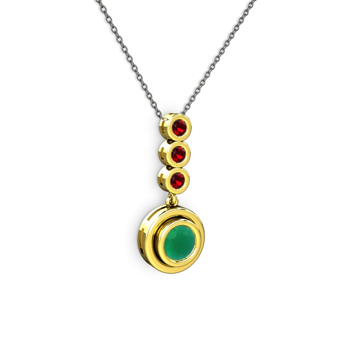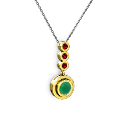 Kök zümrüt ve garnet 14 ayar altın kolye (40 cm gümüş rolo zincir)