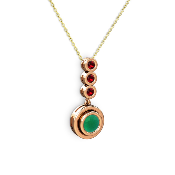 Kök zümrüt ve garnet 8 ayar rose altın kolye (40 cm altın rolo zincir)