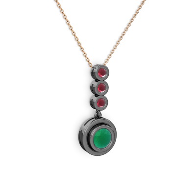 Kök zümrüt ve kök yakut 925 ayar siyah rodyum kaplama gümüş kolye (40 cm rose altın rolo zincir)