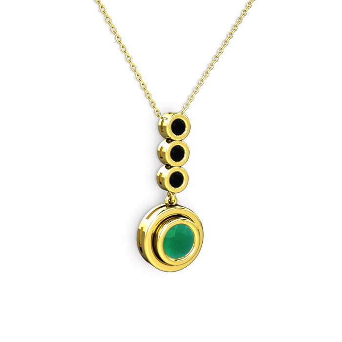 Kök zümrüt ve siyah zirkon 925 ayar altın kaplama gümüş kolye (40 cm gümüş rolo zincir)