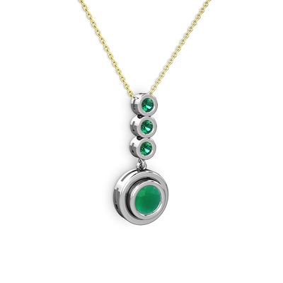 Kök zümrüt ve yeşil kuvars 14 ayar beyaz altın kolye (40 cm altın rolo zincir)