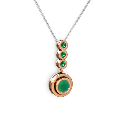 Kök zümrüt ve yeşil kuvars 925 ayar rose altın kaplama gümüş kolye (40 cm beyaz altın rolo zincir)