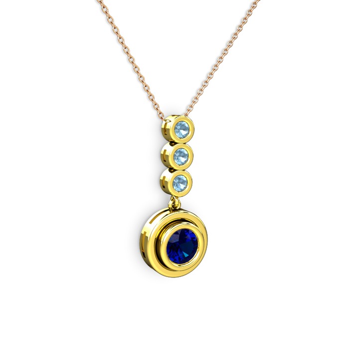 Lab safir ve akuamarin 8 ayar altın kolye (40 cm rose altın rolo zincir)