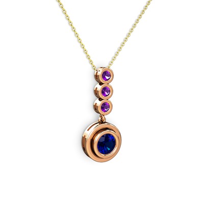Lab safir ve ametist 14 ayar rose altın kolye (40 cm altın rolo zincir)