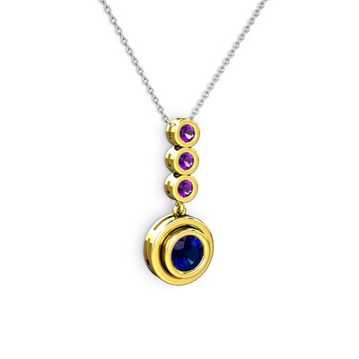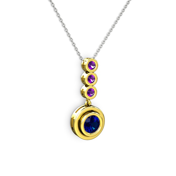Lab safir ve ametist 8 ayar altın kolye (40 cm beyaz altın rolo zincir)