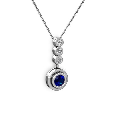 Lab safir ve beyaz zirkon 925 ayar gümüş kolye (40 cm gümüş rolo zincir)