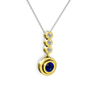 Lab safir ve elmas 8 ayar altın kolye (0.33 karat, 40 cm beyaz altın rolo zincir)