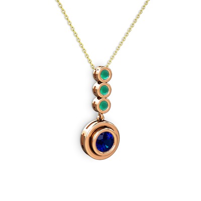 Lab safir ve kök zümrüt 925 ayar rose altın kaplama gümüş kolye (40 cm altın rolo zincir)