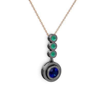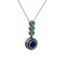 Lab safir ve kök zümrüt 925 ayar siyah rodyum kaplama gümüş kolye (40 cm gümüş rolo zincir)