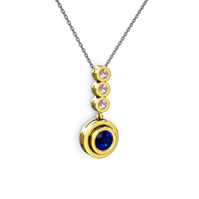 Lab safir ve pembe kuvars 925 ayar altın kaplama gümüş kolye (40 cm gümüş rolo zincir)