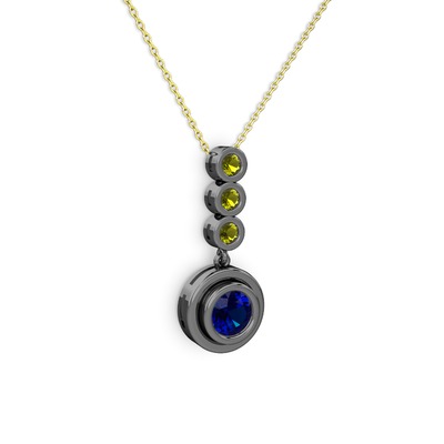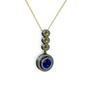 Lab safir ve peridot 925 ayar siyah rodyum kaplama gümüş kolye (40 cm altın rolo zincir)