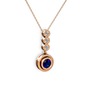 Lab safir ve swarovski 925 ayar rose altın kaplama gümüş kolye (40 cm rose altın rolo zincir)