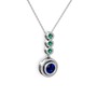 Lab safir ve yeşil kuvars 8 ayar beyaz altın kolye (40 cm gümüş rolo zincir)