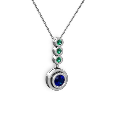 Lab safir ve yeşil kuvars 925 ayar gümüş kolye (40 cm gümüş rolo zincir)