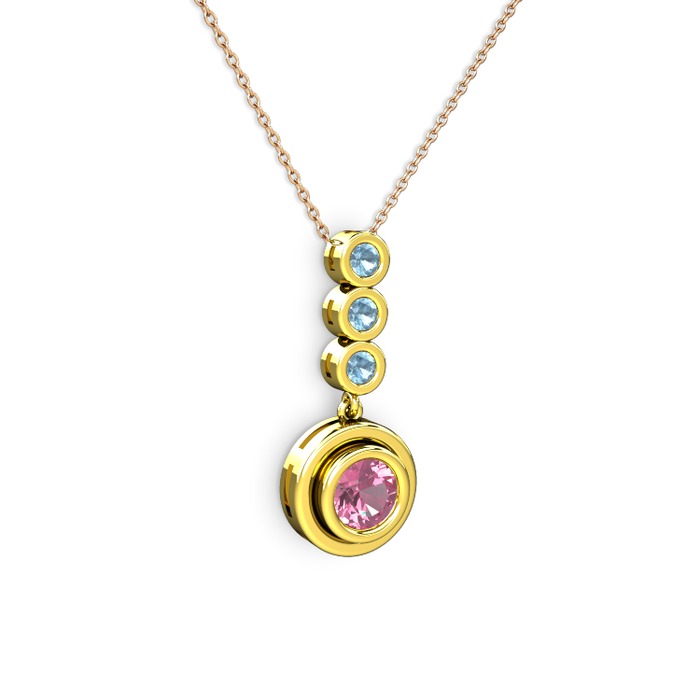 Pembe kuvars ve akuamarin 14 ayar altın kolye (40 cm rose altın rolo zincir)