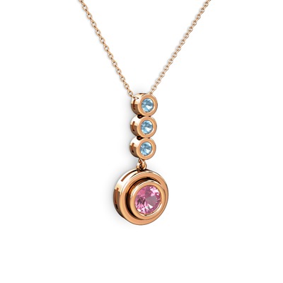 Pembe kuvars ve akuamarin 925 ayar rose altın kaplama gümüş kolye (40 cm rose altın rolo zincir)