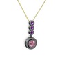 Pembe kuvars ve ametist 925 ayar siyah rodyum kaplama gümüş kolye (40 cm gümüş rolo zincir)