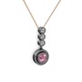 Pembe kuvars ve beyaz zirkon 925 ayar siyah rodyum kaplama gümüş kolye (40 cm rose altın rolo zincir)