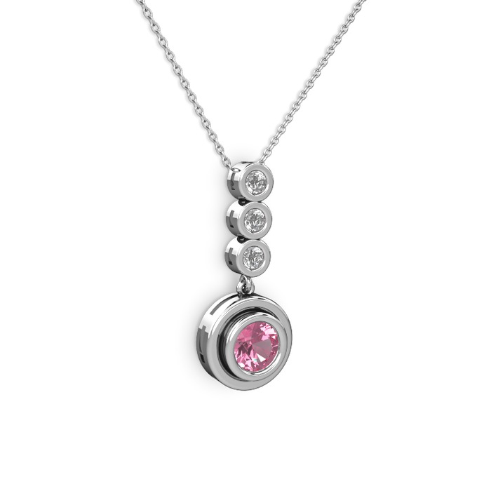 Pembe kuvars ve elmas 14 ayar beyaz altın kolye (0.33 karat, 40 cm beyaz altın rolo zincir)