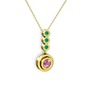 Pembe kuvars ve kök zümrüt 925 ayar altın kaplama gümüş kolye (40 cm altın rolo zincir)